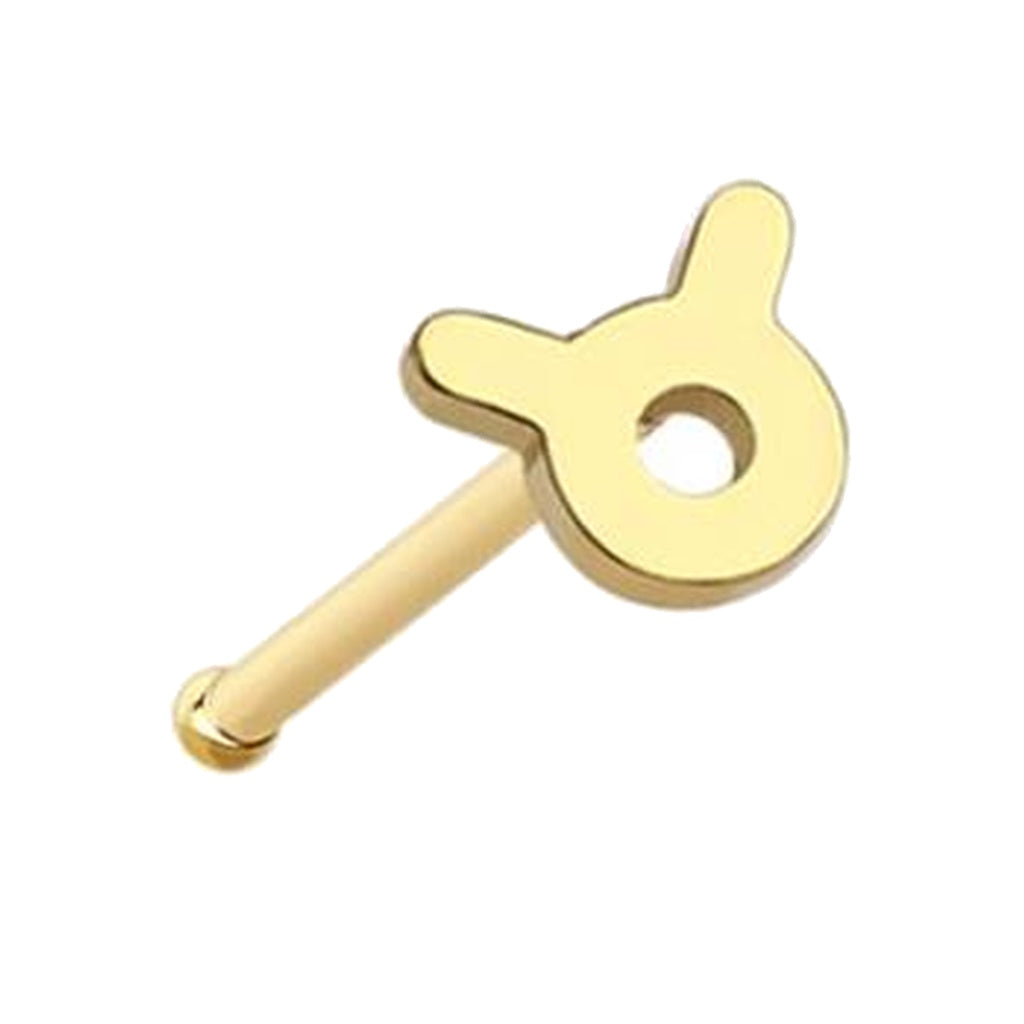 20 Gauge Taurus Zodiac Symbol Nose Bone Stud In Silver, Gold & Black 1/4 Inch